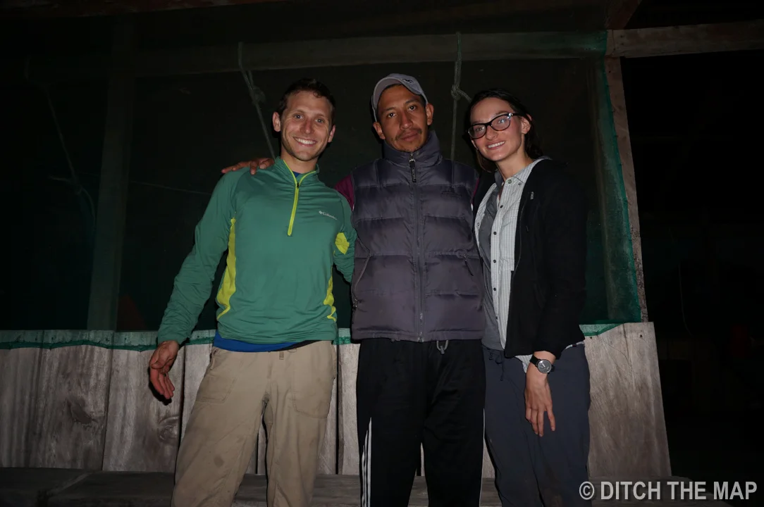 After a relaxing night of walking through the city or Rurrenabaque Sylvie and I ate breakfast at the hotel and got to the tour agency by 8:00am sharp.  We met the three others on our Jungle trek.  A ‘couple’ from Holland and a solo traveler from the UK.  We were lucky yet again with a small group.  We took a short bestride across the Beni River to buy tickets for the Madidi National Park.  We were all waiting in the park office but Sylvie was nowhere to be found.  She came limping in a few minutes later with a large frown and mud up to her ankles.  Apparently she was so anxious about being late that she had inadvertently stuck both of her feet into very fresh mud.  The mud swelled around both her shoes and sucked her under…she looked around but found no branch to pull herself out.  As he struggled one of the cooks, a friendly woman, on the boat locked eyes with Sylvie and laughed.  Sylvie managed to get her shoes out of the mud but not without first pulling both feet out of her shoes and exposing her socks.  She looked like a swamp monster with her shoes covered in mud 3 inches thick!