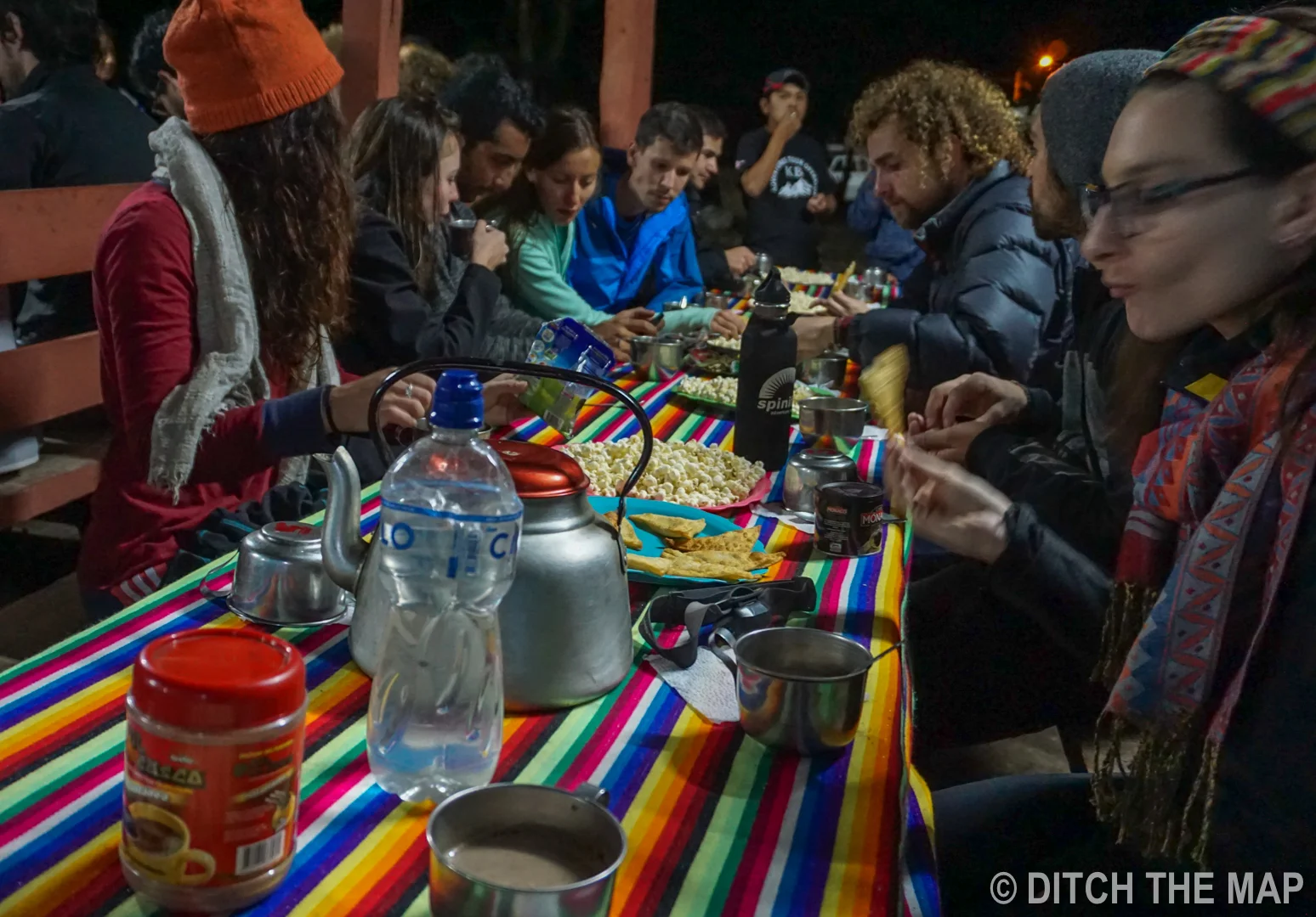 After visiting the hot springs, we had dinner and then a party around a bonfire to celebrate conquering the highest altitude any of us had ever encountered. We started the celebration with a shot of Inca tequilla and then danced around the camp fire with our group to latin and american music.