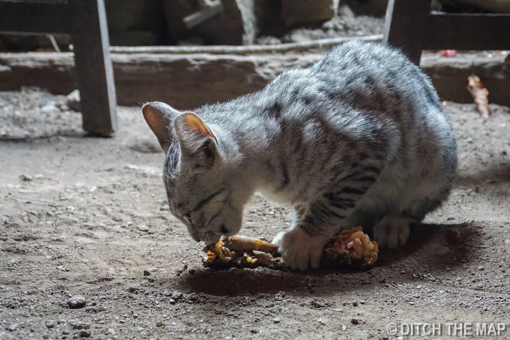 Adorable kitten steals our chicken bone while eating at hydroelectrica