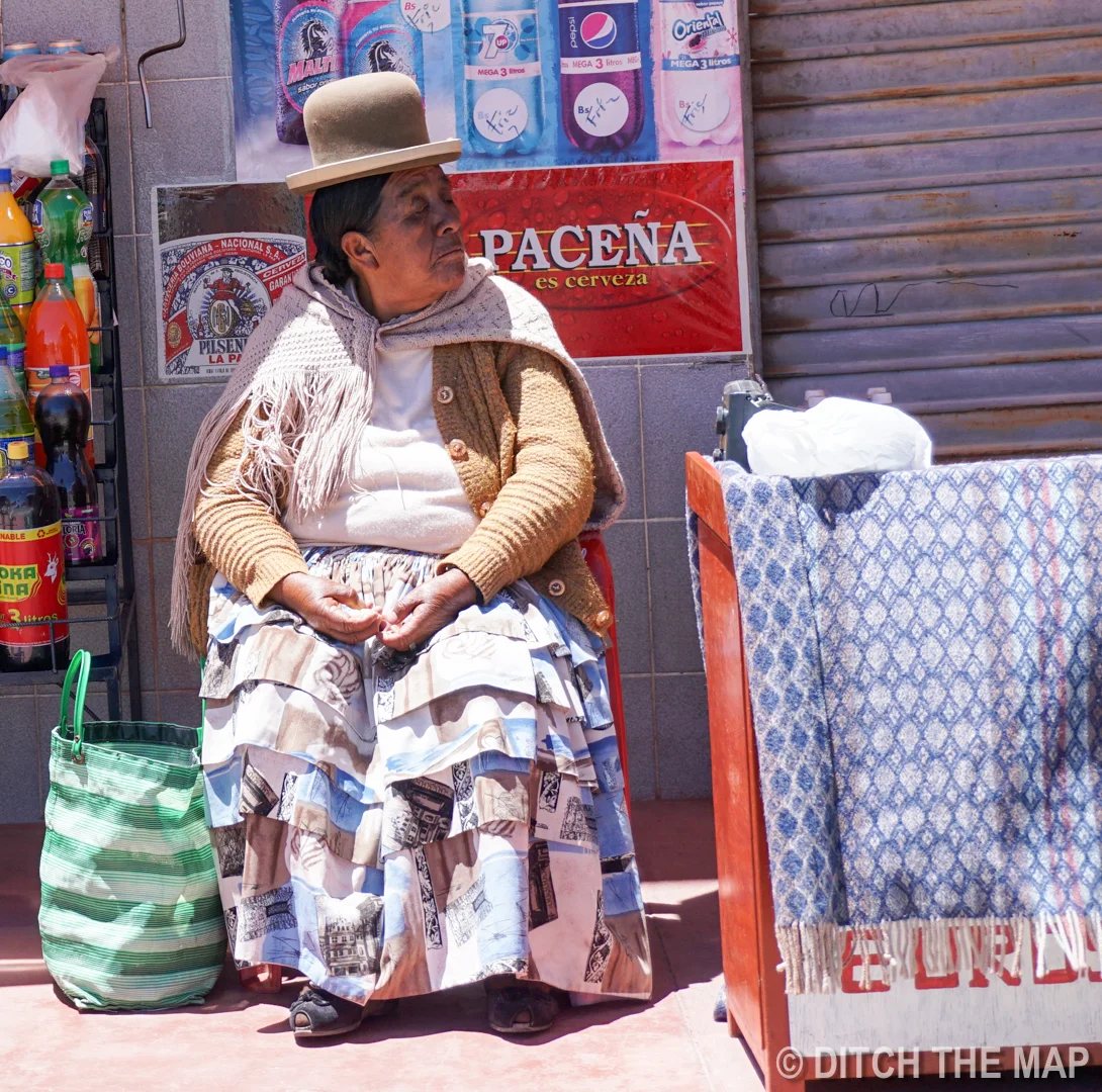 Indigenous Woman wearing traditional "silly" hat in La Paz, Bolivia