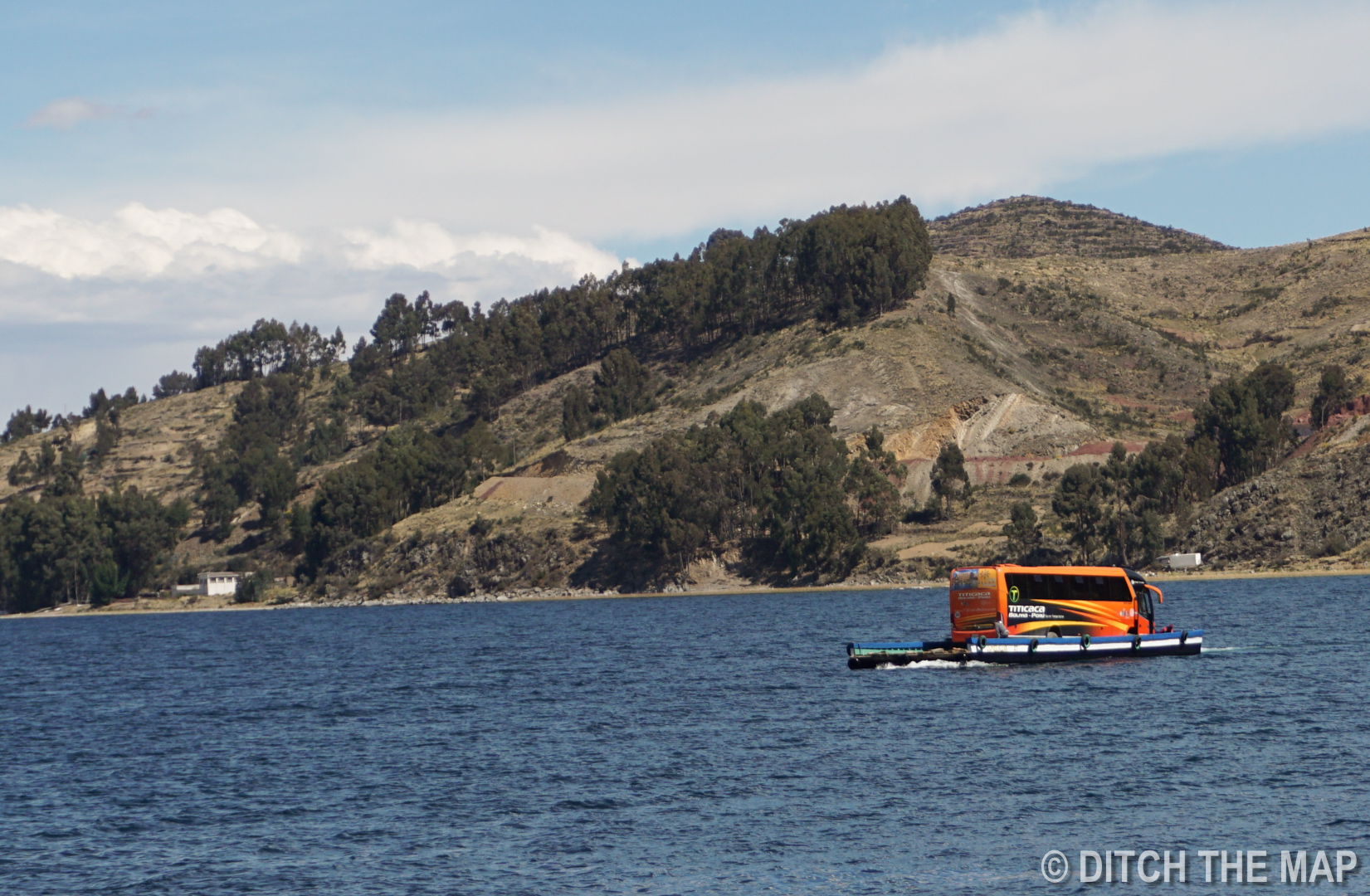 We take a ferry across Lake Titicaca...our bus follows!