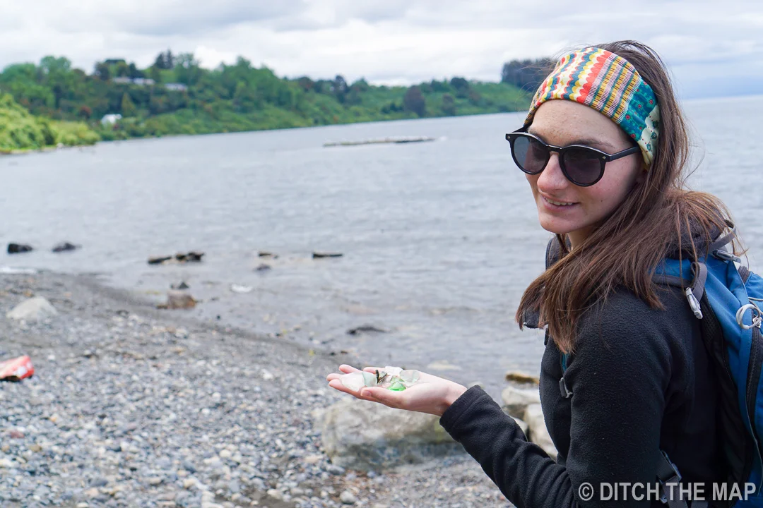 After breakfast, Cesar dropped us off at a local bus stop so we could take a minibus to Frutillar--a small lake front town about 30 minutes north. Cesar’s friend, who helps him with the Airbnb, had emailed us a list of things to do around Puerto Varas--Frutillar being one of his suggestions. Frutillar was a cute, sleepy town on the lake. There wasn't much going on but the houses were very cute and the architecture was reminiscent of a New England town. We spent a couple hours walking along the narrow rocky beach admiring the scenic views and collecting sea glass.