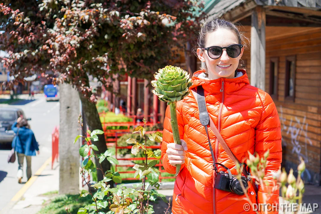 Sylvie holds our evening snack in Puerto Varas, Chile