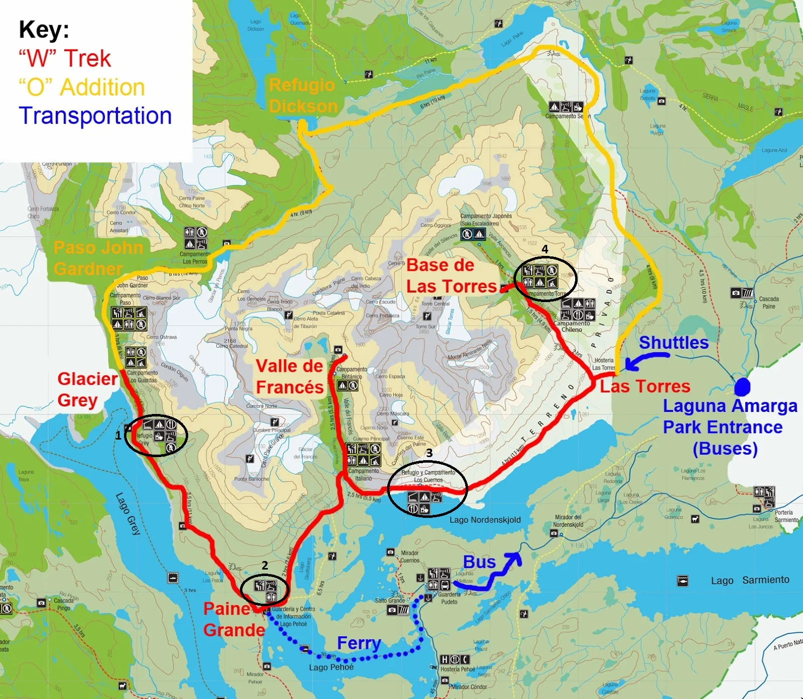 A large portion of the reason I am going to South America is to travel through Patagonia. Being as south as it is there are only a few months that hiking the area is possible--Nov thru Mar, which is summer in the southern hemisphere. One of the most popular destinations in Patagonia is Torres del Paine. Hiking Torres del Paine can be done by either day-hiking backpacking. I will not be carrying proper equipment to camp in the extreme conditions so I was left with fewer options. I decided to rent camping equipment for half of the hike and stay in Refugios (dorms) for the other half. Due to the popularity of his hike these things book up very early. In order for us to be able to hike the "W" circuit (the desired 5-day backpacking hike) I booked the accommodations/equipment in advance. Since hiking Torres del Paine is towards the end of our Patagonia route we will work backwards from there to figure out when and where we should be to ensure we give ourselves appropriate time in the other parts of Patagonia. We would like to play things by ear as much as possible, but this element of the trip just had to be pre-arranged. I would like to give credit to Dany from Globetrotter Girls for her very insightful experience in Patagonia. We did not want to reinvent the wheel and used much of her route to formulate our own. Please feel free to check her route commentary here.