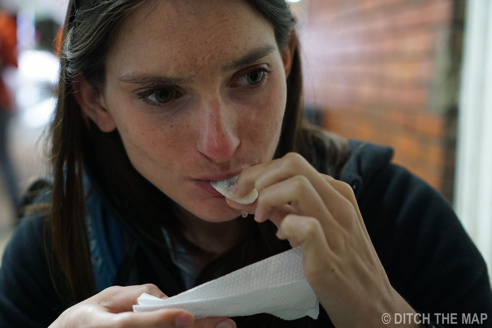 Tasting a plum in Bogota, Colombia
