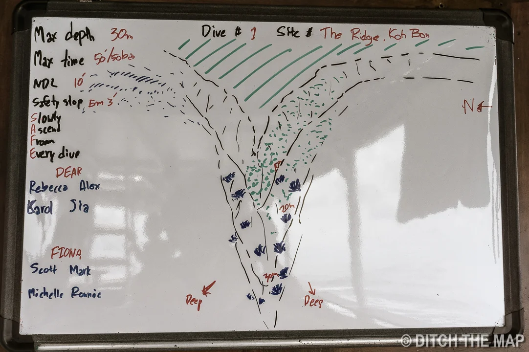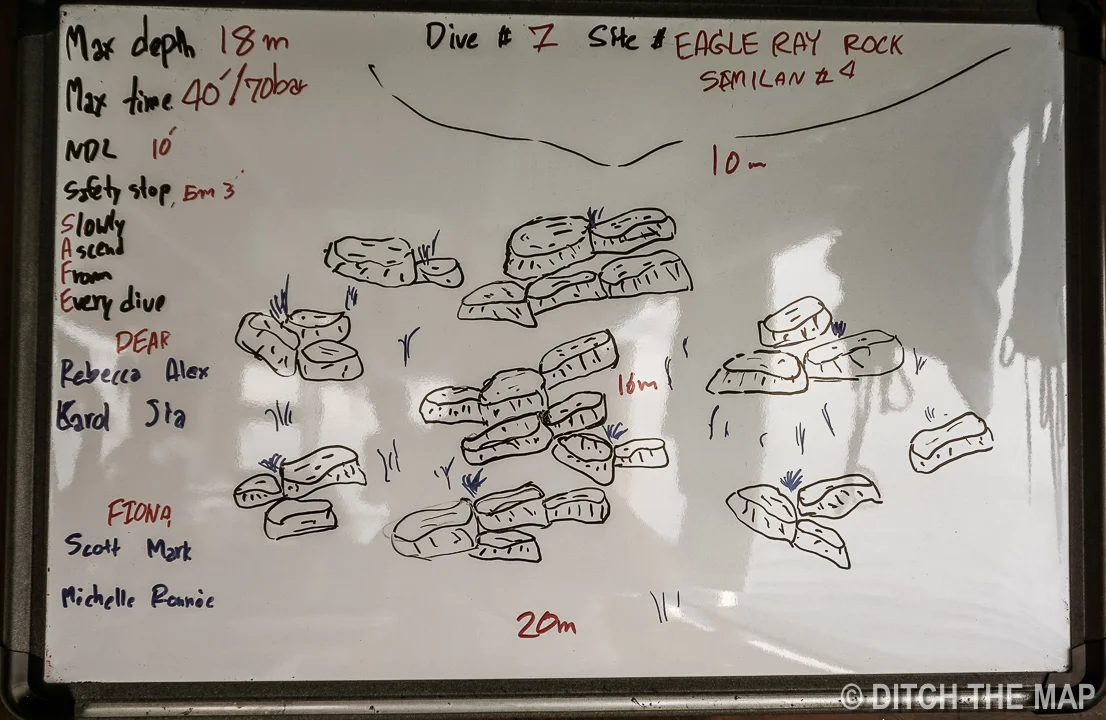 After each dive the compressor gets to work refilling all of our tanks. We are by far the smallest liveaboard here at the Similan Islands. I’m sure most of the other boats have several tanks and a much larger compressor. The constant drone of the engine and compressor is quite taxing. The word ‘Similan’ comes from a Malay word, meaning ‘Nine’ as there are 9 islands. However I recently read that 2 more islands have been added to the group.