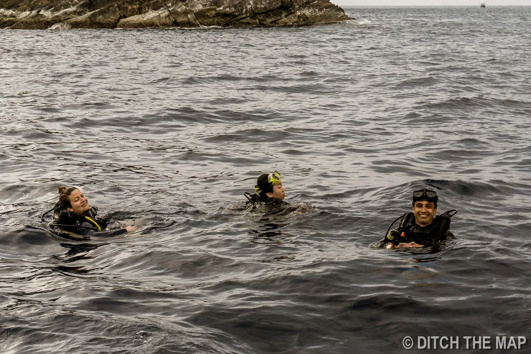 When we descended to depth we were not by any submerged structures to reference. It was a bit disorienting but thankfully the dive outfit provided us all with dive computers—a handy wristwatch the monitors depth, ascent/descent rate, water temperature, dive time, and the no decompression limit. The no decompression limit is the length of time remaining, at the current depth that you can continue diving without requiring an extensive decompression stop. A decompression stop is when a diver remains under pressure for a while and vents off some of the dissolved nitrogen in their tissue. Without the required decompression stop the divers is at an elevated risk for developing decompression sickness (DCS), also known as “the bends”.