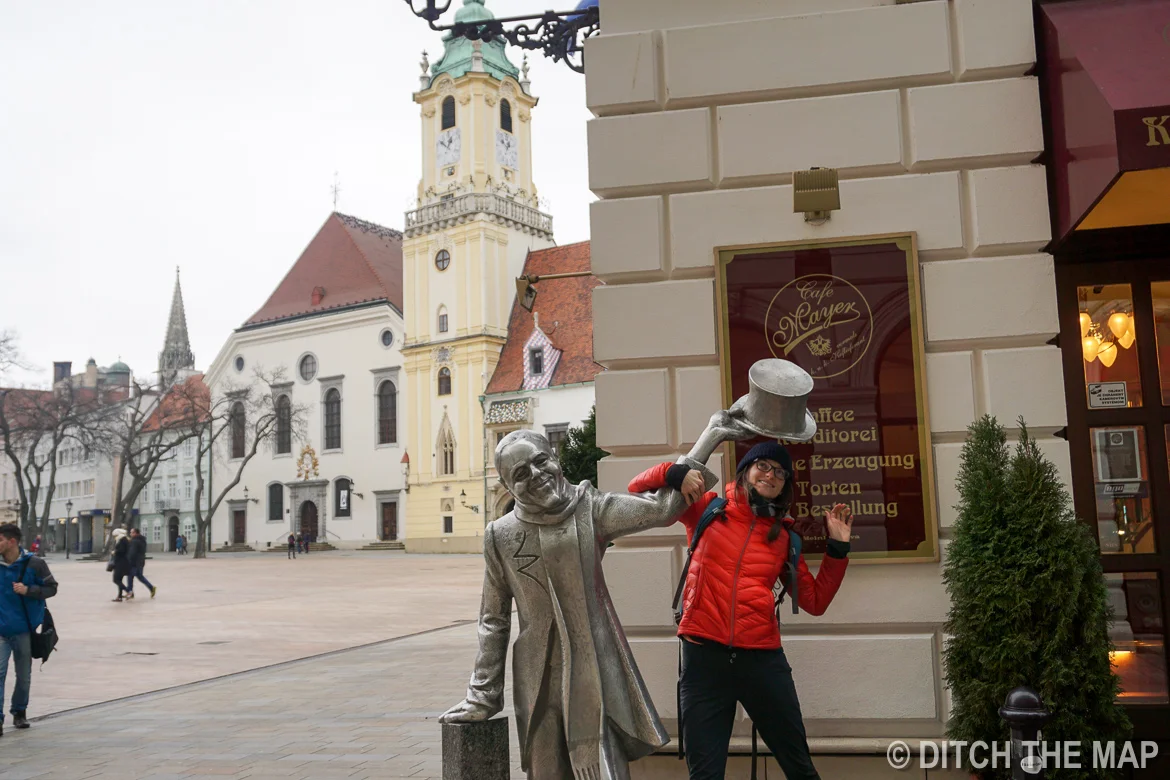 After a short 1.5 hour bus ride from Vienna we arrived in Bratislava. We noticed how depressing it was at first, but once we got to Old Town things starting looking up. The buildings were bright colored and the streets were all cobblestoned. There seemed to be new stores all over the place. We enjoyed a hip/trendy breakfast joint before heading out into town.