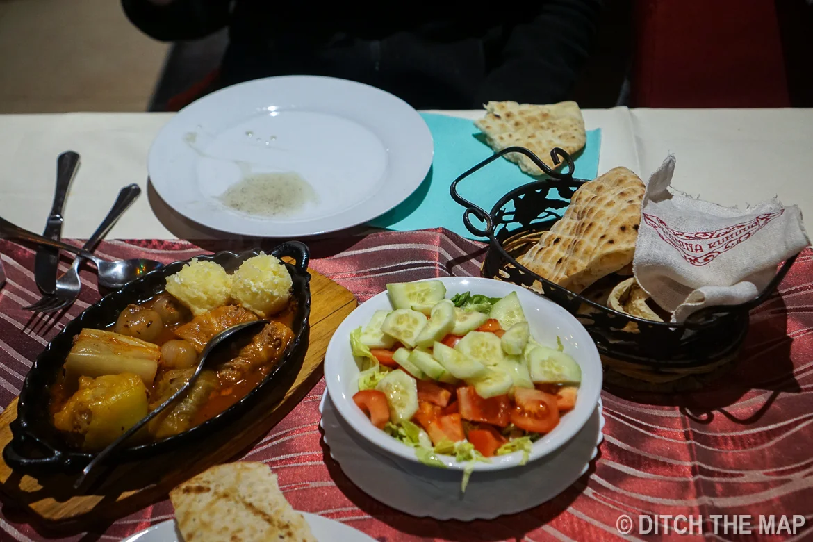 We stopped to look at an old cemetery with dozens of graves marked by the Islamic star and half moon and several unmarked graves of victims of the war. We walked by countless souvenir shops which always find a way to mar the beauty of a place with their inauthentic nicknacks. Many stray cats roamed the streets, including an exceptionally clever fellow who hangs out by the grocery store looking extra adorable enticing passer-byers to buy him a treat inside. We fell victim to his ploy. Darn cat. The prices in the supermarket were cheaper than any we have come across in Eastern Europe thus far. Food for dinner for two nights at $16 USD, we'll take it!