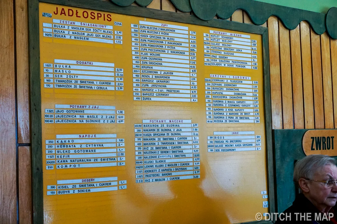 In Praga we stopped for lunch at a cafeteria-style restaurant called a milk bar, in polish, Bar Mleczny. These restaurants are remnants of the communist era--they were created to serve cheap meals. They offer authentic, no frills food for as little as $2 USD. Mostly older people and students use them. After struggling to read the menu, we ordered our food at the counter and were scolded in polish by the woman working the register to not take pictures. We stepped up to the counter, which opened up to the kitchen to receive our food, and it was ready in less than a minute. Very efficient service—though impersonal. We shared beetroot soup (served in a mug) and fried dough stuffed with shredded pickled mushrooms in the bleak dining area. The soup, though bright purple, was very tasty! We drank it straight from the mug. Our consensus: good food for a cheap price with a serious and no-nonsense atmosphere.