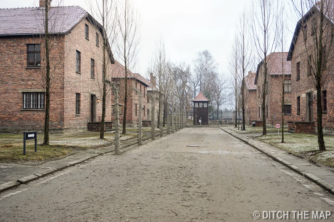 We started our day at 5:30am. To respect the others in our hostel room we took our clothing and supplies to the kitchen and changed/prepared there. However in doing so we woke up the staff members working at the hostel. The guy working the front desk slept in the common area on the sofa and the kitchen was right next door. We walked 25 minutes to the bus station and made it to our 6:40 bus just in time. While on the bus we watched the first 1.25 hours of Schindler’s List. Sylvie has never seen it and I thought it would be more meaningful watching it on the day we were visiting Auschwitz.