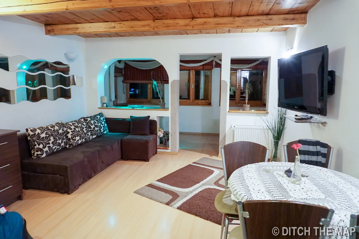 From Krakow we took a bus to Zakopane, a small touristy town at the base of the Tatra Mountains that borders Slovakia. It hadn’t really occurred to us that Saturday would be a very busy time to visit the popular weekend destination. We found ourselves fighting for a space in the line to board the bus. We managed to find two seats, but several people spent the majority of the ride standing. The bus ride was supposed to take 2 hours but ended up taking a little over 3 hours...thanks to traffic. As we neared the town we saw the mountains and lightly snow covered ground. We walked from the bus station, through the adorable main street of town, to our Airbnb apartment. We lucked out; the apartment was perfect--affordable and close to town.
