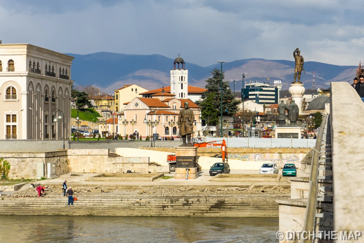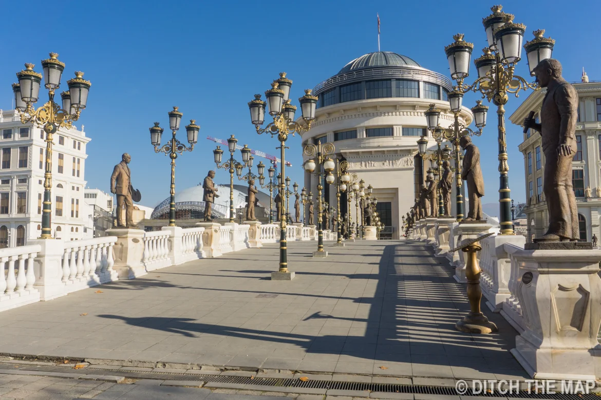 From Ohrid it was a three hour bus to the capital of Macedonia, Skopje. We walked through Skopje to get to our hostel and could not help but notice the surplus of large, gaudy statues everywhere. The statues depict all different figures; lions, bulls, horses, men with guns- their mammoth size makes and puzzling significance making them feel a bit tacky. Grandiose palace like buildings and eastern orthodox churches had an equally populous presence in the city. Skopje is not shy when it comes to extravagance. Despite its flamboyance it is one of the more modern cities we've been to in EasternEurope. It is also less polluted and better maintained than Albania's capital city.