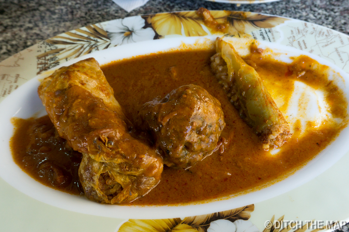 From the mosque we walked by the walls of the old 6th century Tvrdina Kale Fortress and continued into the winding roads of old town until we found a Turkish restaurant for lunch. We shared a stuffed pepper and stuffed cabbage- delicious and cheap.