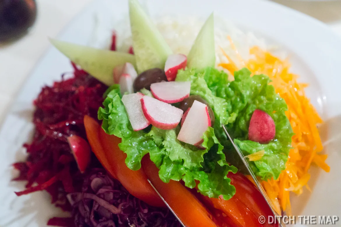 At night the town took on a magical quality. Old churches on hill tops were illuminated and glowing against the black water of the lake. We wondered up and down stone stairs getting lost in more and more beautiful scenery and discovering countless churches. We finally made our way to dinner and shared another traditional meal and salad. We can't get enough of the medditerarian style salads.