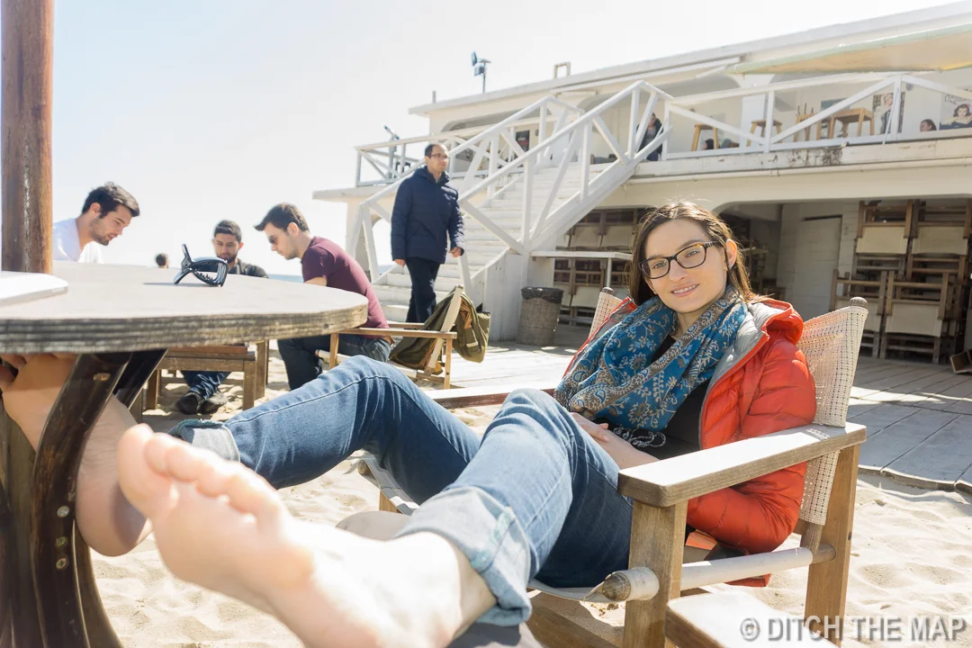 We walked to the coast and took in the sunlight and cool breeze off the Black Sea. Despite the name it was in fact not black. We took off our shoes and socks and walked for some time up the coast until we got to a seaside café. We took two of the only remaining seats and faced the sea to relax for a while. I rubbed Sylvie’s feet as we discussed our travels.