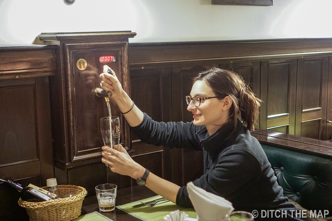 Pour our own beer at the Ale House in Sofia, Bulgaria