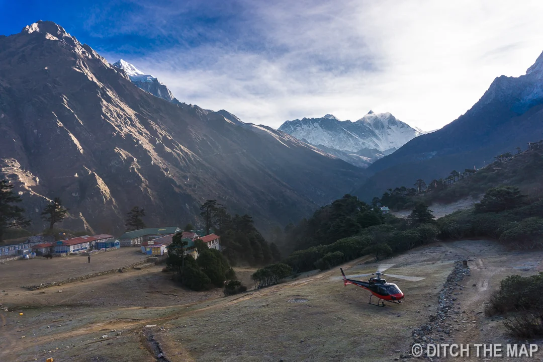 Medical evacuation via helicopter in Dingboche, a view from our window.