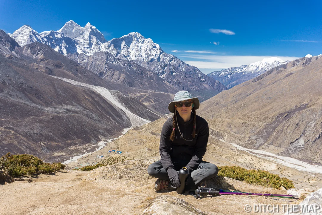 Sylvie rests while hiking up Nagarjun Hill outside of Dingboche
