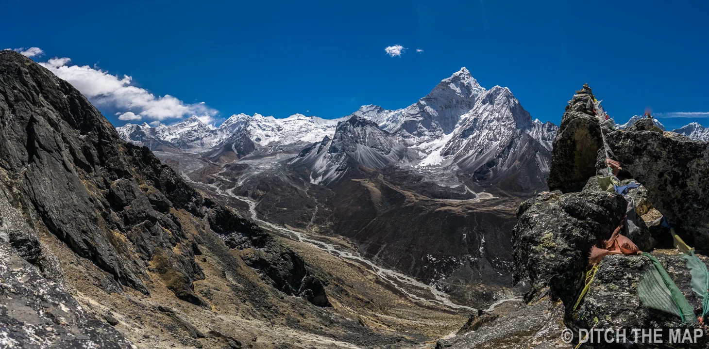 A panoramic view of the mountains just outside of Everest Base Camp (click to view)