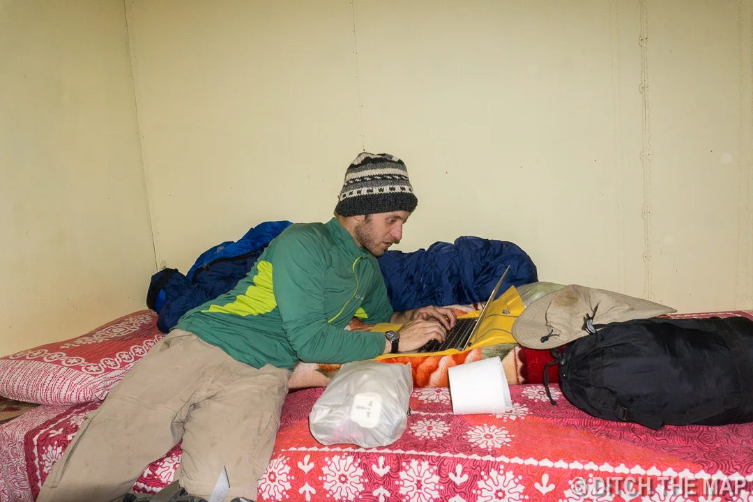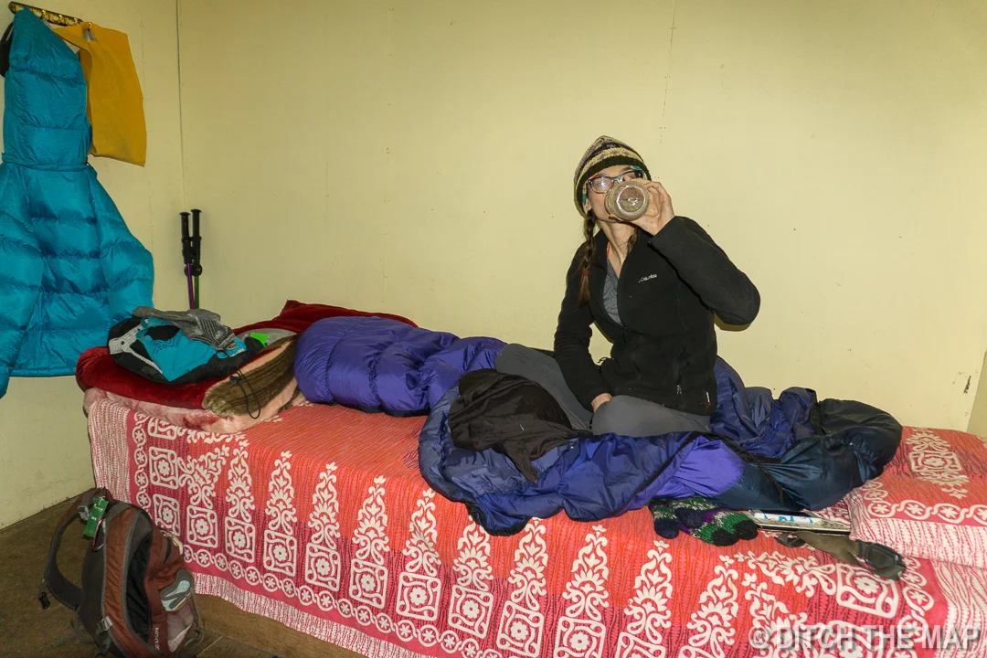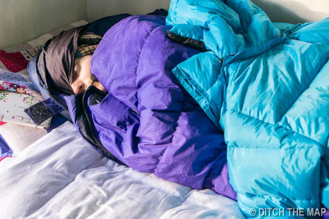 Sylvie stays warm in bed during my hike up to Kala Patar
