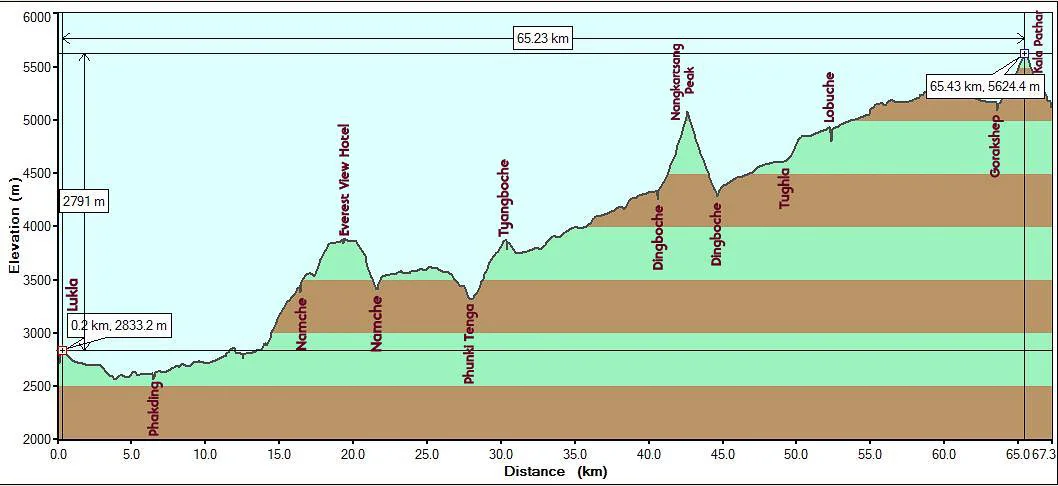 Elevation Gains for our Hike From Lukla to Everest Base Camp