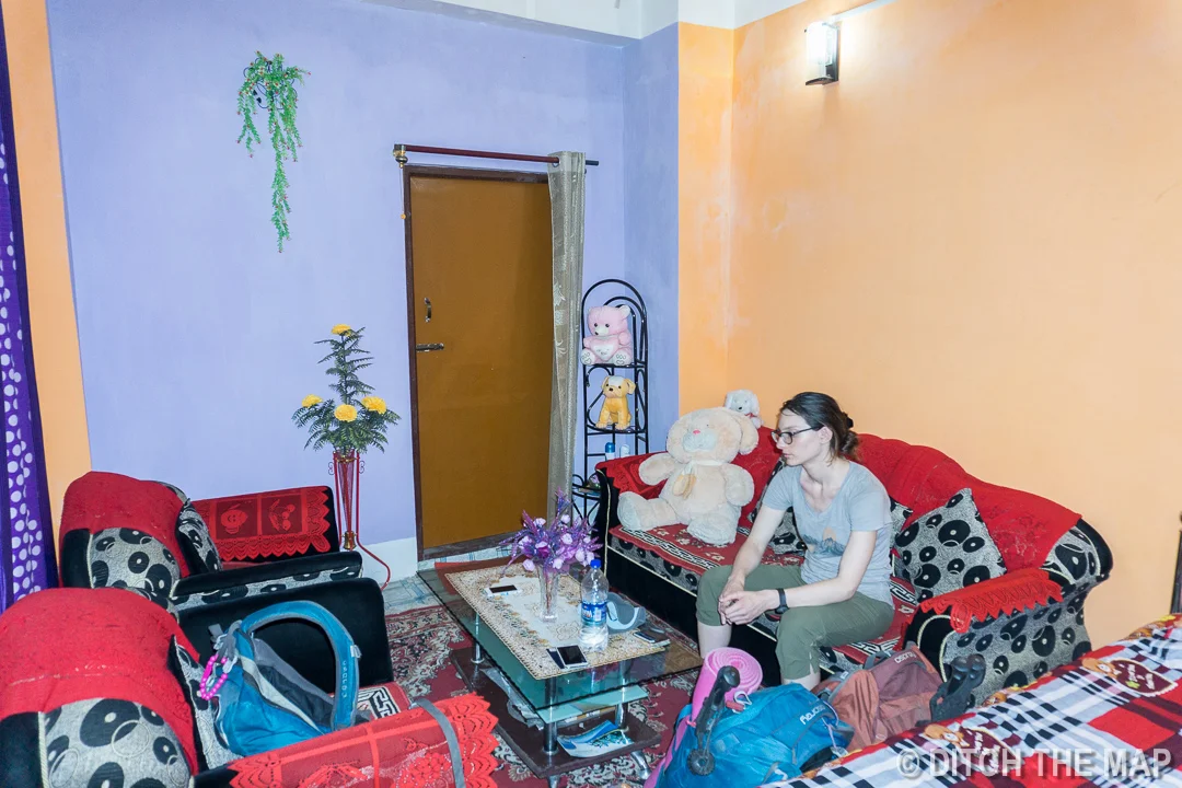 I found the homestay online and Sylvie called them directly to set something up. I first tried to go though a broker but had up-charged 100%. We are to pay 800rp ($12.30 USD) per night per person—that cost includes 3 meals and 2 teas along with the lodging. For An extra 100rp we will be able to tour the tea estate, pick the leaves, and see how their tea is processed. This tea estate, the Makaibari Tea Estate, is one of the oldest estates in the Darjeeling region, dating back to the 1850s. There is a collective of over 2-dozen homes that work and provide homestays on the farm.