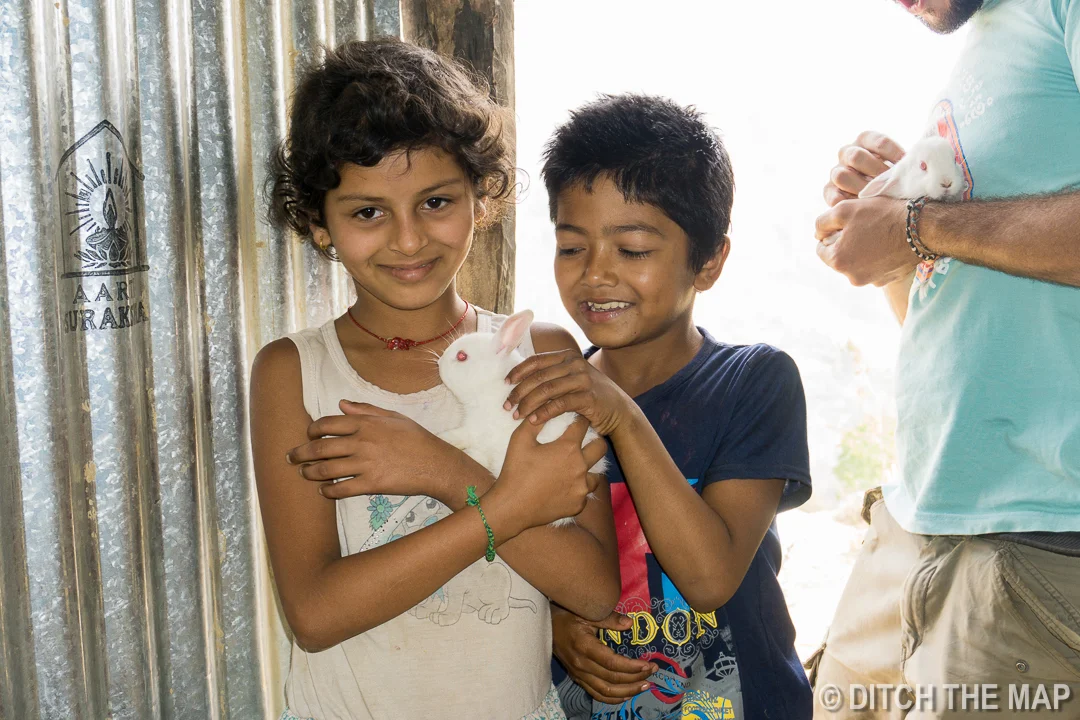 Through the website, workaway.info, we found an opportunity to build an orphanage with a family on a farm in a rural Nepali village. The family had their three-story home destroyed in the 2015 earthquake. They are now trying to repair the damage and move forward. With the help of volunteers over the past year they have made much progress, but a lot of work remains. Gagan is the oldest son of the family with whom we arranged the workaway. His parents, both teachers, live on the farm with their ten-year-old daughter, and several other kids who either lost their parents in the earthquake, or have parents that don’t have the means to take care of them. The family grows vegetables and also owns several goats, chickens, rabbits, and a dog and cat.