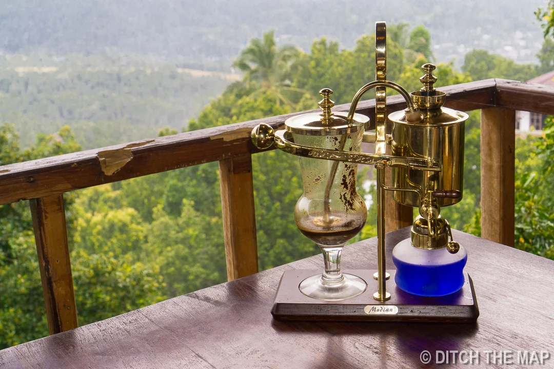 Enjoying the view while enjoying civet coffee in Munduk, Bali
