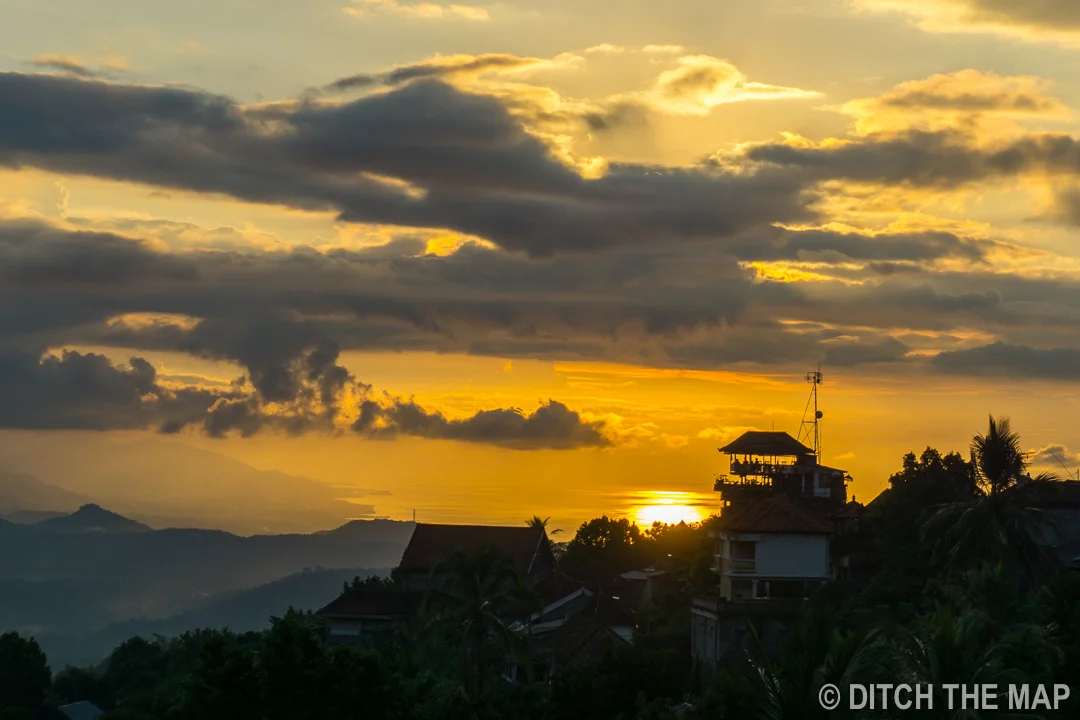 As we headed back to our homestay we could see the sunset lighting up the sky in the distance. It was too irresistible to pass up so we hopped into the nearest restaurant with a second floor balcony and enjoyed the view with a beer. It was beautiful to watch as it set behind the mountains and reflected off of a lake in the distance. It's truly undeniable how beautiful Bali is!