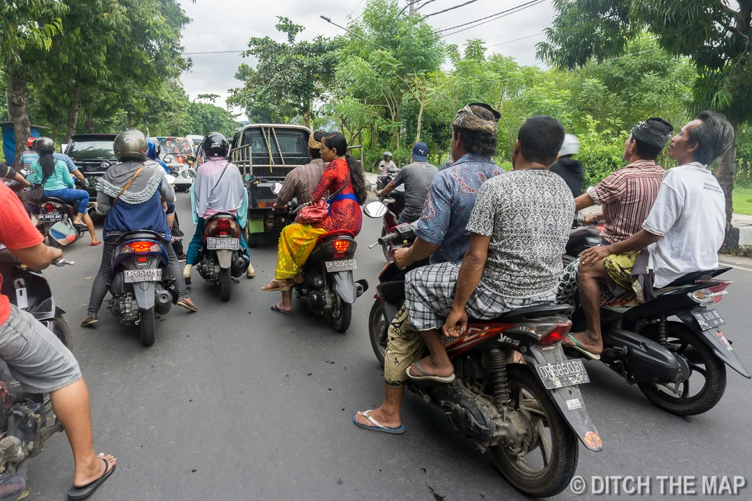 Driving in Traffic in Lombok, Indonesia