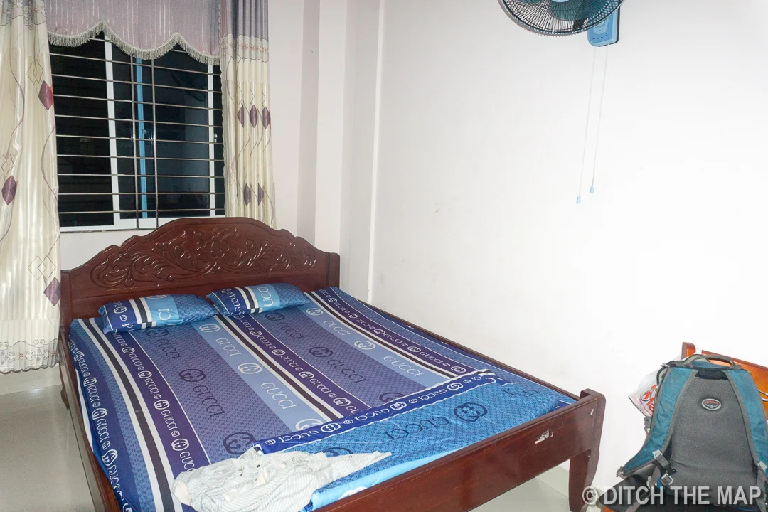 Our Hotel Room with Fake Gucci Sheets in Rach Gia, Vietnam