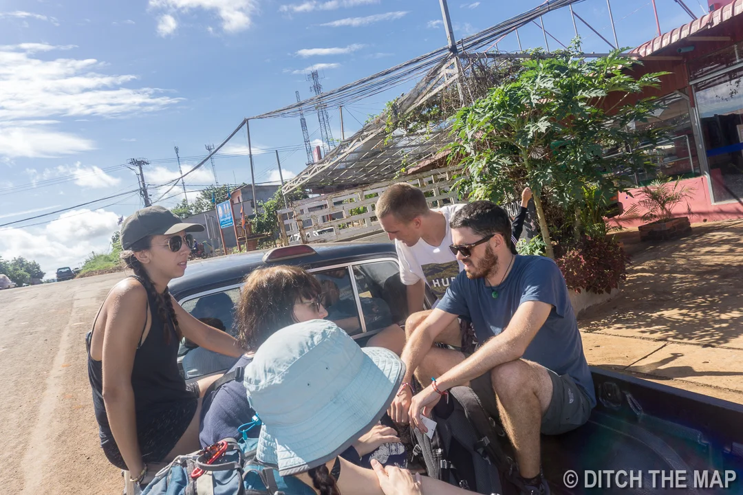 Finally, by 8:00pm we had arrived to the province of our destination, Mondulkiri. We were dropped on the side of the road, but luckily a women on our van spoke some English and called our lodge to come pick us up. Pretty promptly we were picked up by our lodge. We hopped in the back of the pickup truck that already had half a dozen other backpackers who had just arrived from Phnom Penh. The 6-hour direct bus that we bought tickets for ended up being a 13-hour journey that required 4 separate vehicles.