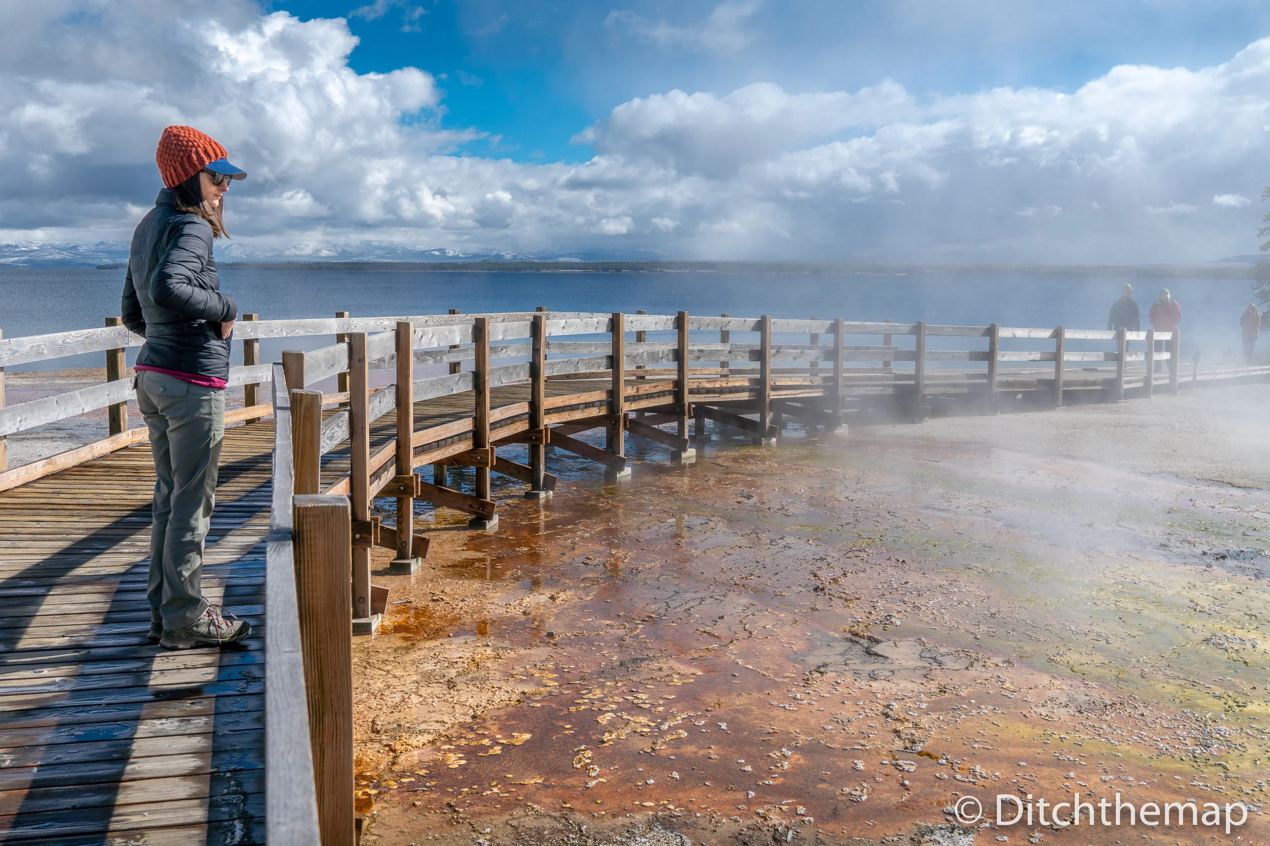 Sylvie on a boardwalk in Yellowstone National Park, Wyoming