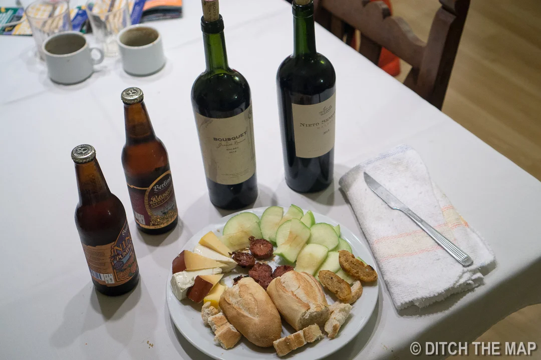 We ended up hitching a ride with someone along with 2 other people. The two other people were a recently married couple on their honeymoon. We talked for the brief 25-minute drive. They were just getting over being sick and starting to finally enjoy their vacation. They were traveling from Buenos Aires. She warned us about being safe there. We all asked to be dropped off at a grocery store near our hotels (we were actually staying very close to each other). They helped us pick out a bottle of wine—the wine that they served at their wedding.