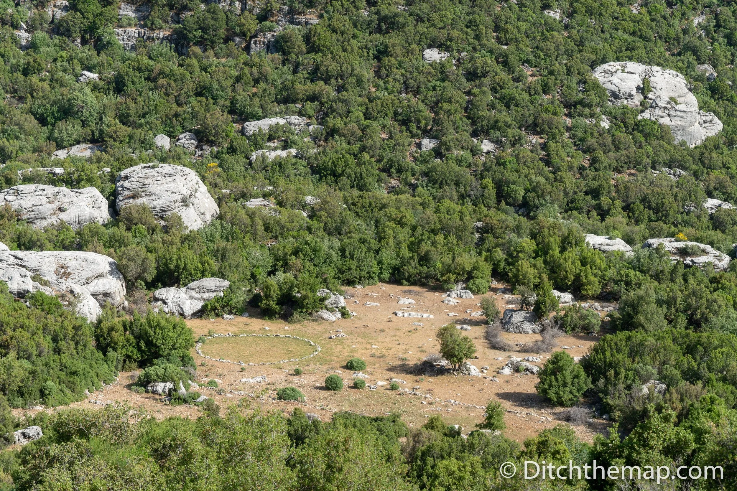 We thanked him for the ride, exited the car and entered a pine forest. The shade provided by the tree coverage was a joyous reprieve from the heat. We coursed up and down ebbing hills on soft pine covered ground and passed smooth, layered rocks. A noisy herd of goats and an ambling tortoise crossed our path.