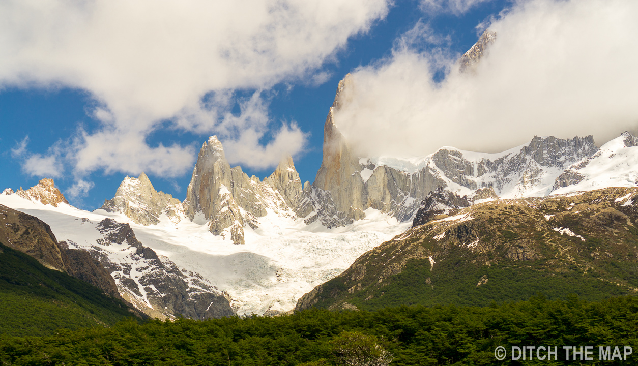 Our first full view of Mt. Fitz Roy in El Chalten, Argentina