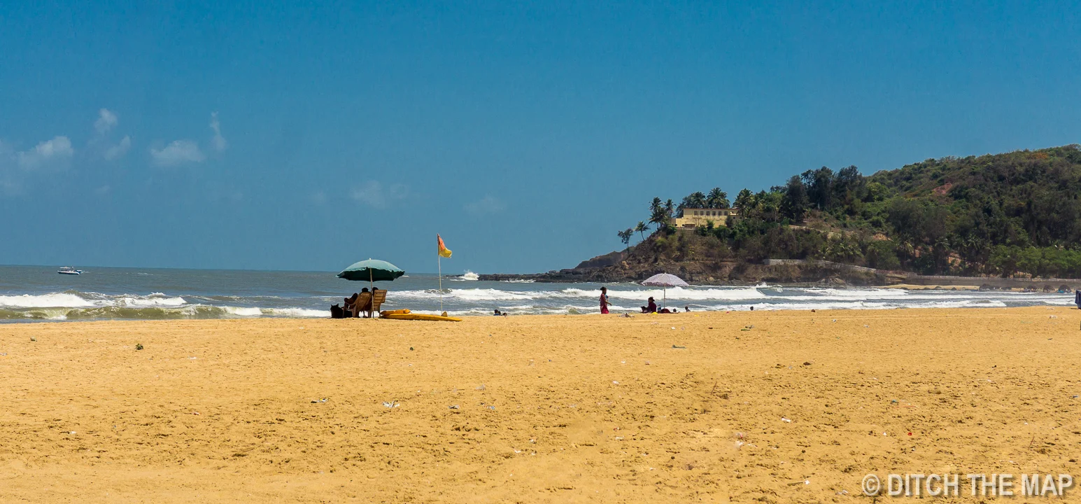 In true Indian style, we rented a scooter for the day to explore some of the beaches farther north. It cost us only $4 for a day rental! The quieter less trafficked beach roads are good for adjusting to the Indian driving style without extreme fear for your life or well-being (unlike in the big cities). We hopped on the scooter and scoot-ed up to Vagator and Anjuna Beach. Though all of the beaches we visited were within a 5 mile radius of each other, several of them had unique terrain, rocks and vegetation making for an interesting contrast. None of the beaches were very crowded and most of the women were in full clothing. After visiting several beaches, we concluded that we were very happy with our choice to stay in Candolim beach, which seems a bit more happening and upscale that the other beaches. (this opinion has been updated during our 2019 visit, keep reading on)
