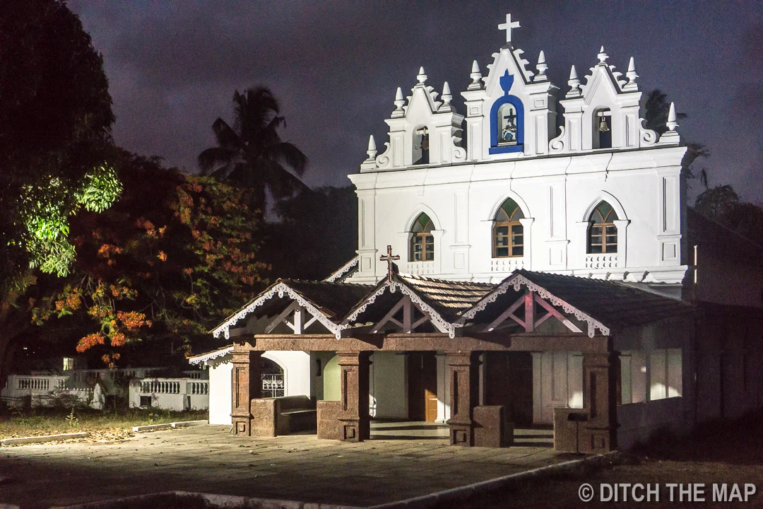Candolim turned out to be a fun town with many shops, restaurants and bars lining the main road. Everything was very accessible and within walking distance. We were really impressed by the food at all of the restaurants we visited. We tried some local Goan cuisine including prawn xacuti and pork vindaloo. Xacuti is a curry sauce flavored with coconut and it is delicious! Before coming to Goa we did not know that vindaloo derives from here. Vindaloo is actually influenced by a Portuguese dish called Carne de Vinha d'alhos which is traditionally made with pork. The Portuguese occupied the region of Goa before the East India Trading company. The Portuguese influence can still be felt in some regards, with a small catholic population and the presence of churches.