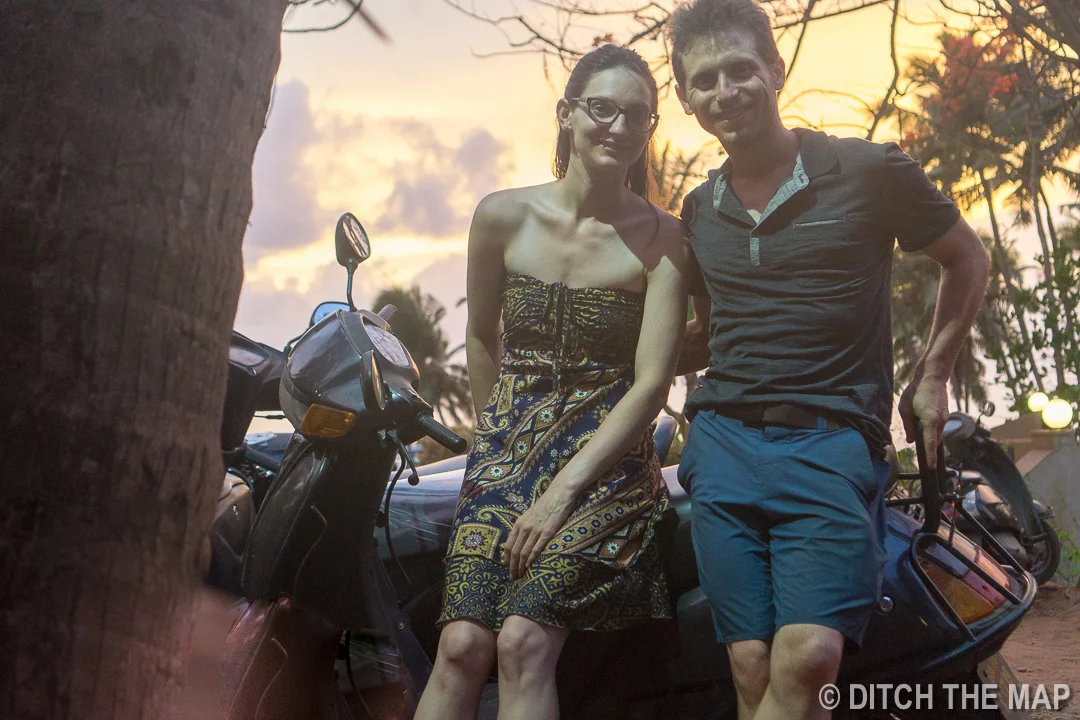 Taking a rented scooter out around town in South Goa, India (click to view)